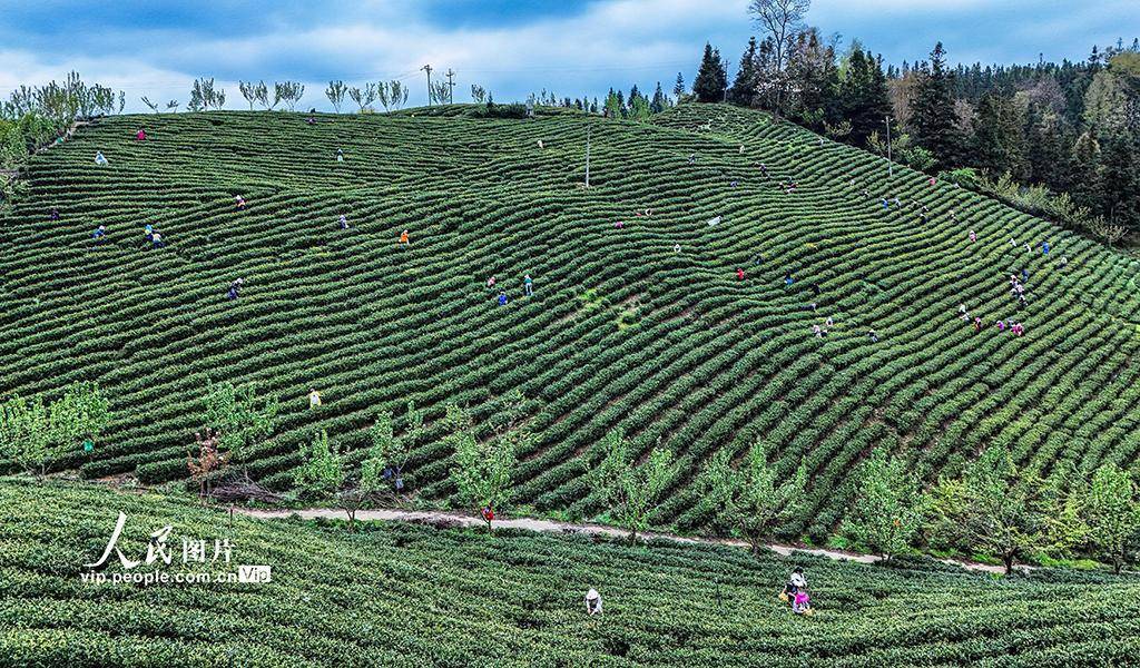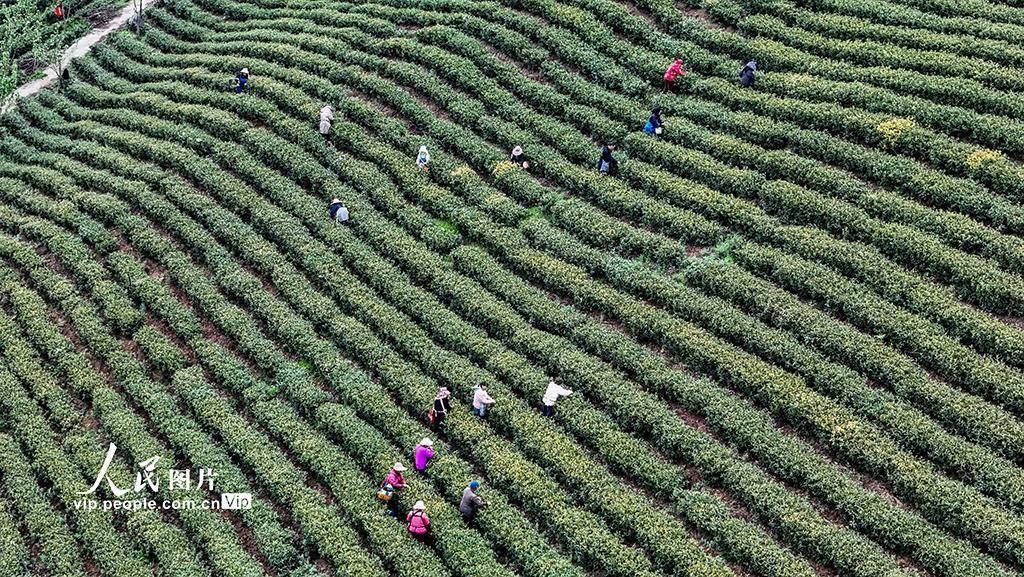 2026年3月20日,贵州省黔西南州晴隆县各茶园插足采摘期开yun体育网,当地茶农忙着采收,供应阛阓。李允凤摄(东谈主民图片网)
