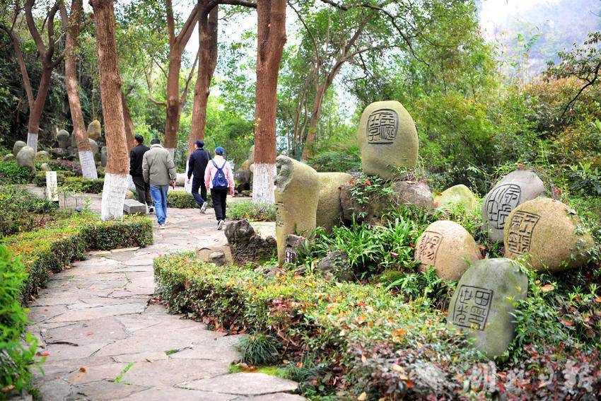 搭客在宜昌市夷陵区三游洞征象区的“石刻钤记”区游览。