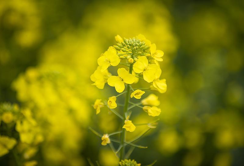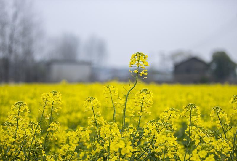 金黄的油菜花在微风中摇曳生姿。
