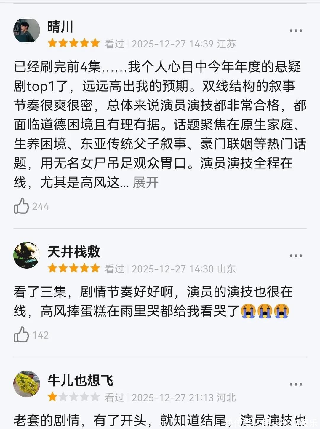 我追完4集后,忍不住翻且归复盘,才发现好多看似有时的细节都是伏笔,比如高风养父临死前录的红烧肉教程,看似是父爱,实则可能藏着对于身世的踪影;还有吴父那句“谬误时刻还有老爸”,跟高风的三个寿辰变成反差,细想全是戏。