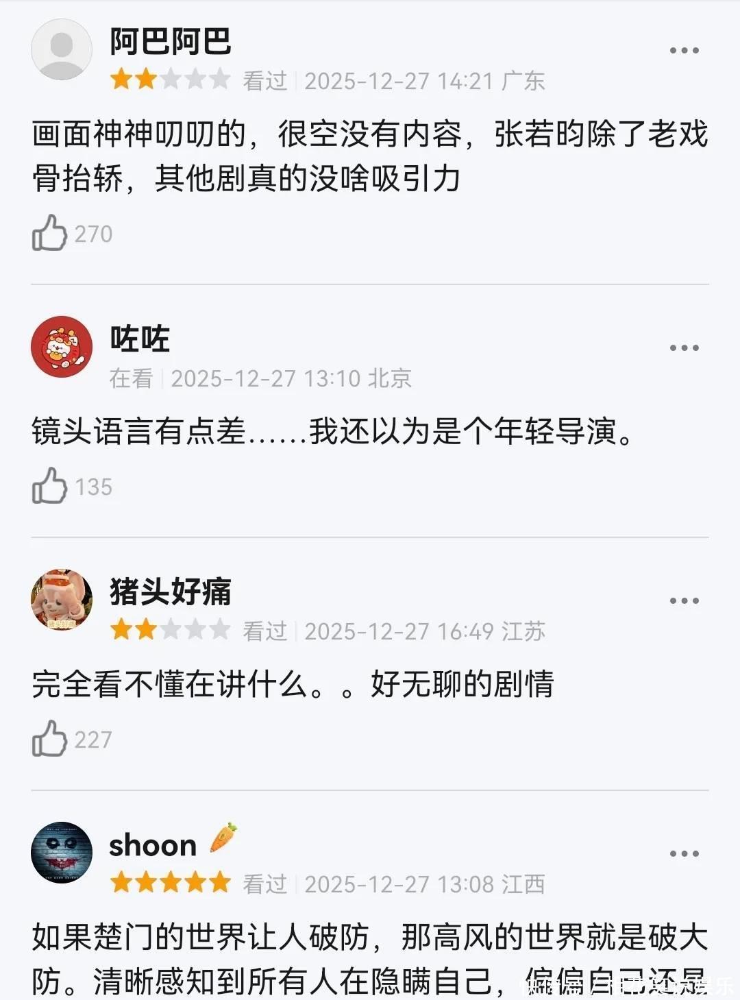 好多不雅众暗示前两集双线并行太割裂,跳着看容易看不懂,甚而有不雅众径直弃剧。