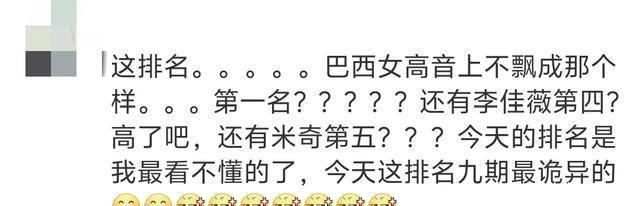 固然,关于她本期的演唱,大多量网友的评价齐是“高音虚”和“破音”。本期也被称作是九期节目以来,最诡异的一期排行。李佳薇第四高了,米奇相识进展尽然只可排在第五的位子。