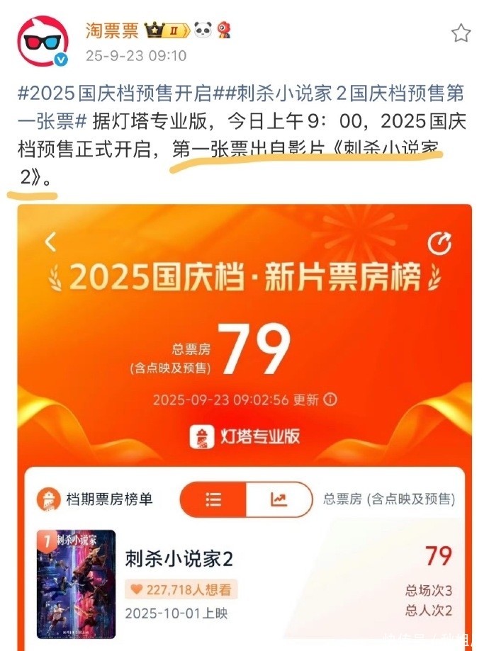 9月23日开启预售仅数小时,票房连忙突破280万元,贴近300万大关。