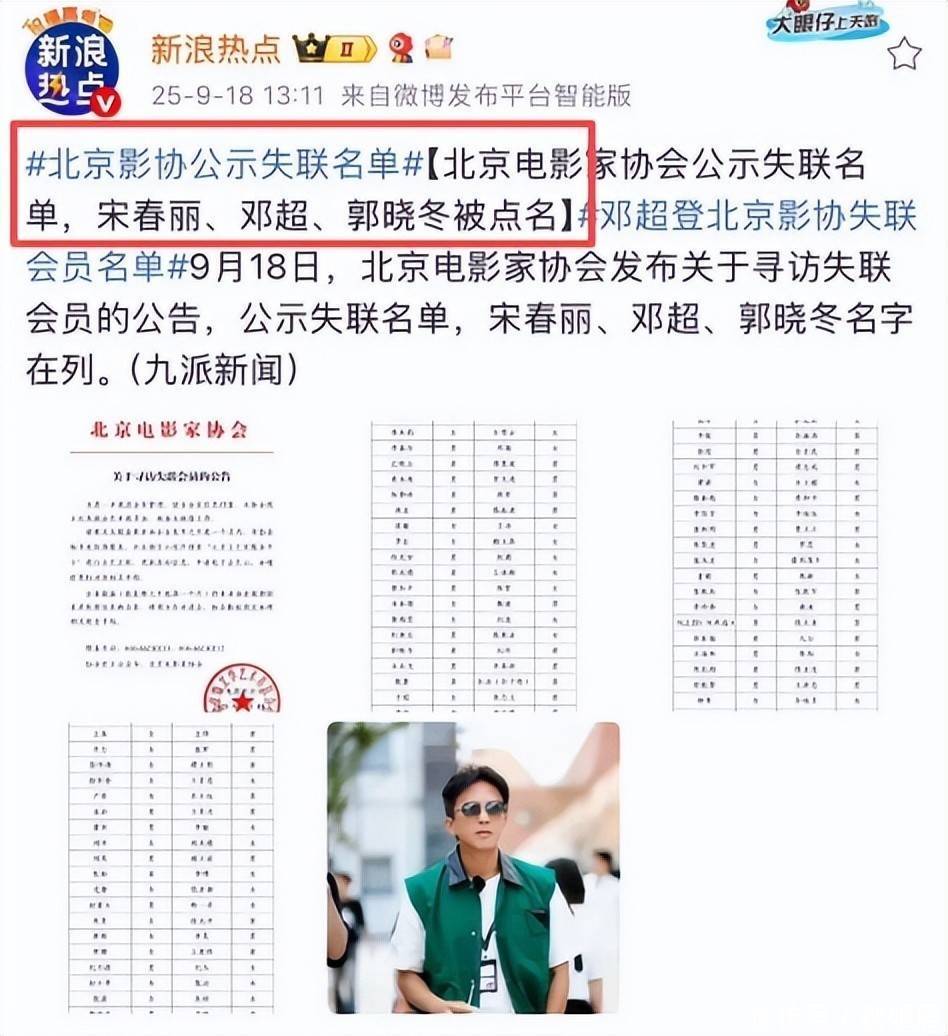 北京电影家协会发布一则公告,将邓超列入“失联会员名单”。
