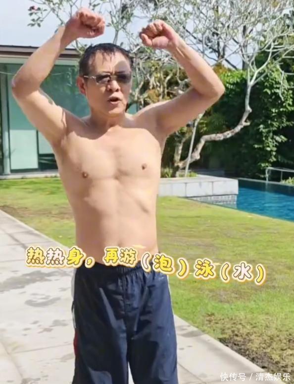 咱们不错看到 62 岁的他,除了脖子上的皮肤皱纹较多,举座的身材如故有肌肉抽象彰着,紧致鼓胀,略有一丝小肚腩。