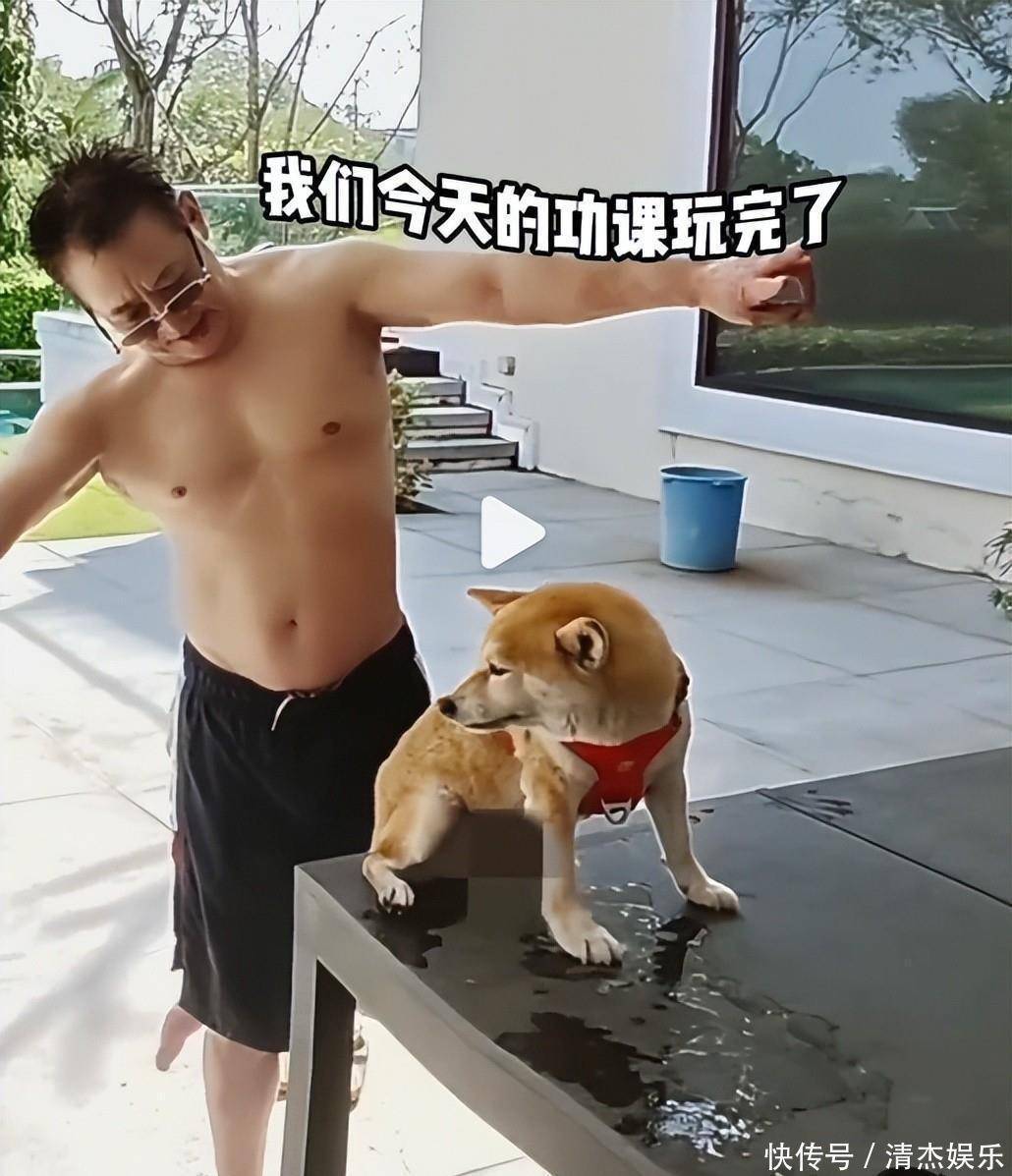 举止举止热身了几下,他就下水游起了泳,上岸后还陪自家小狗玩了起来,嬉戏奔波。
