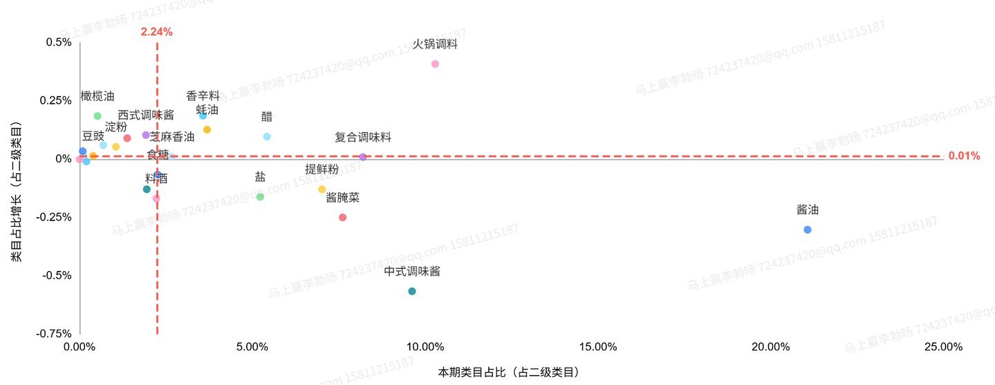 在本季度,咱们考中了酱油、暖锅调料、登第调味酱、复合调味料、酱腌菜、提鲜粉、醋、复合调味汁、橄榄油共9个较有典型性与代表性的类目进行增速与类目内情况的不雅察,以2025Q4要点类方针阛阓份额臆想,上述9个类方针阛阓份额悉数>70%。
