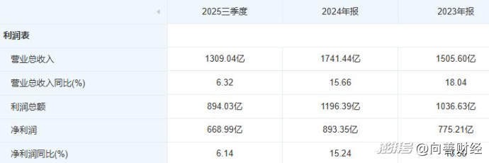 把柄天眼查APP数据,按照前三季度的增速来拍脑袋意象,瞻望2025年贵州茅台商业总收入约为1830亿元,归母净利润约915亿元。